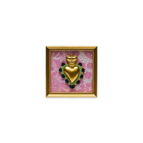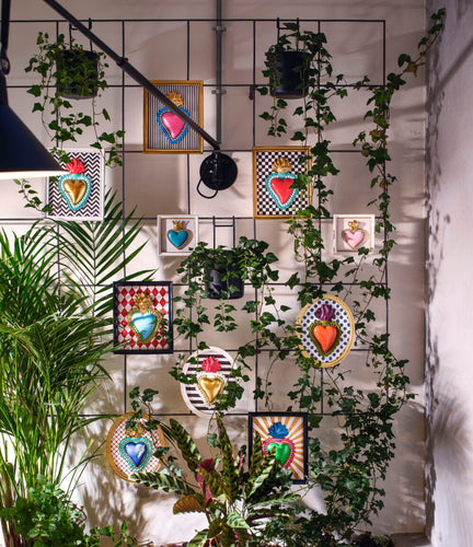 Originale ed iconica collezione: piccoli quadretti colorati con cuori sacri dalle tinte sgargianti, in resina dipinti a mano.